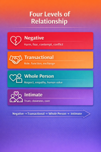 This is one reason the attached framework is useful. It identifies four levels of relationship: negative, transactional, whole person, and intimate. In ordinary human life, all four may appear at different times. But in court-appointed communication systems, the safest level is usually transactional, sometimes softened by limited whole person language. The most dangerous level is negative, because court professionals often read anger, contempt, accusation, and sarcasm as indicators of poor judgment or emotional dysregulation. The least useful level in monitored family-court communication is often intimate, because trust, closeness, and emotional depth are not the functional purpose of the tool.